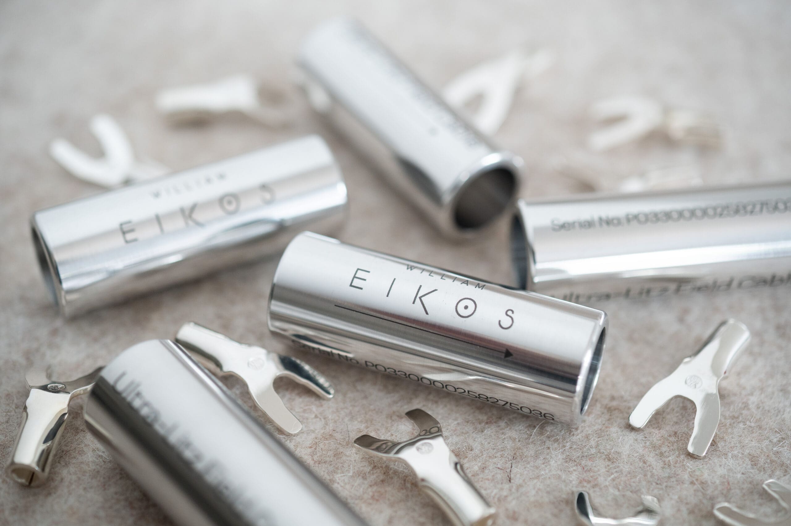 Today Litz wire can be found in a small number of audio cables but what differentiates the William Eikos range is the sheer quantity of strands used in each conductor. The Terra Nova interconnect has 750 while the Ultra Litz Field speaker cable has no fewer than 8,000 in each conductor. It is called Ultra Litz Field in reference to the field effect which is where the signal is propagated around the cable as well as within it, an effect which screening negates and which wool felt allows. Bill puts much of his cable’s qualities down to this factor. Wool felt was also chosen because it is very good at damping vibration, we have seen that simple cable raisers have a distinct impact on cable sound and this is likewise to do with reducing vibration, so clearly such things are significant.